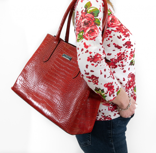 This is a hand drawn print made in shades of vibrant reds, pinks and green.